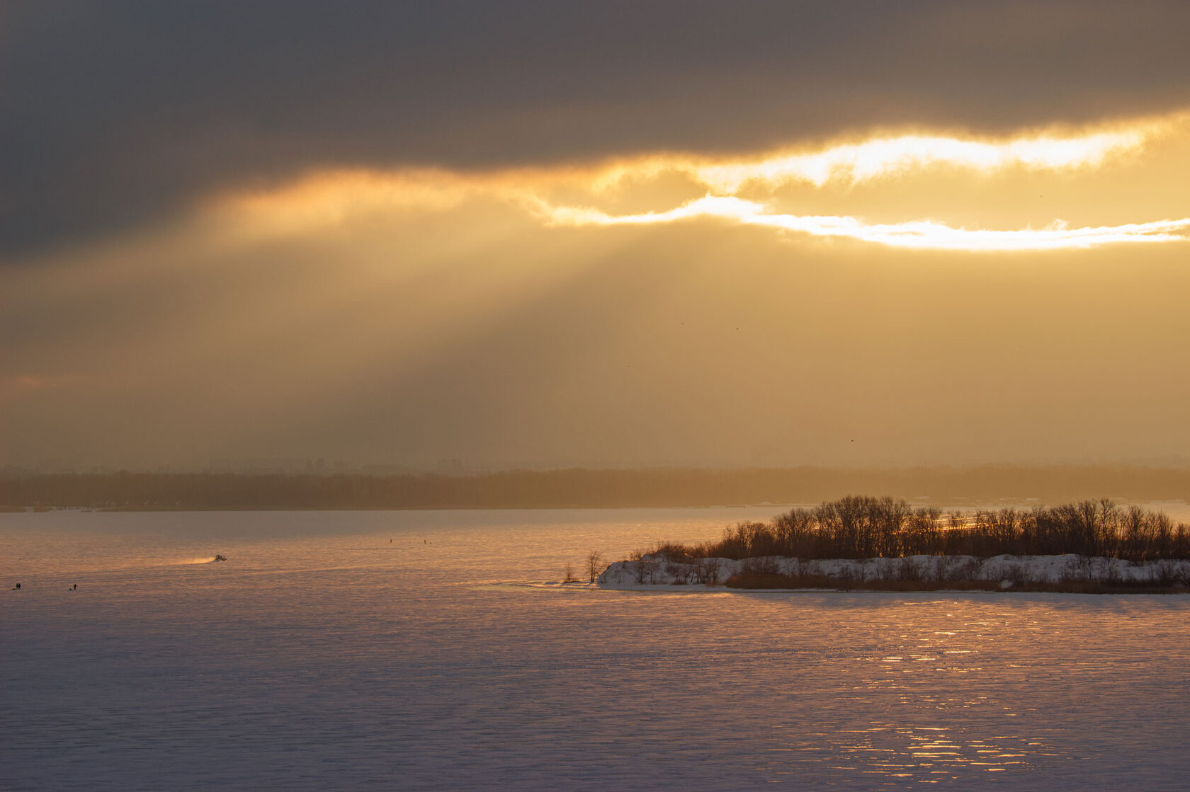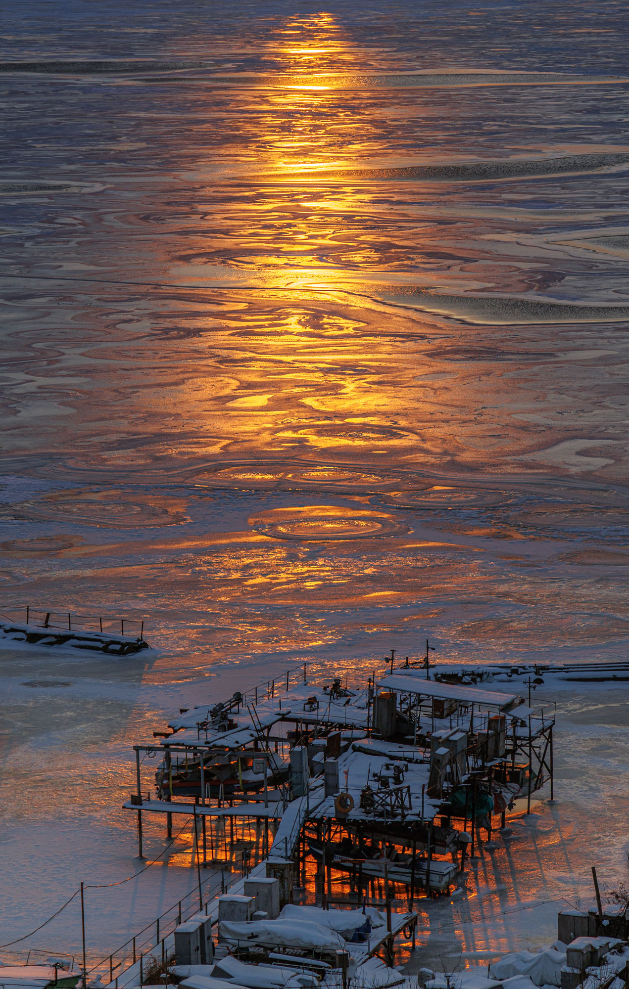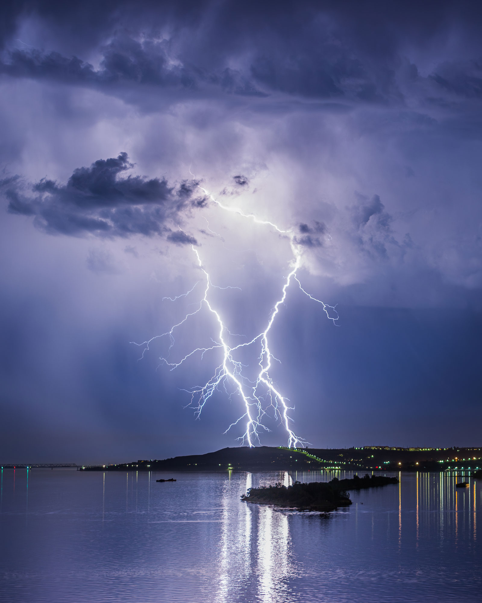 Самые насыщенные в этом плане периоды – ноябрь с его яркими рассветами, декабрь с парящей водой и первым льдом, а летом – грозовой июль. Однажды я организовал шуточный проект «лифтограм»: распечатал серию таких фото из окна и прикрепил на магнитах в лифте своего дома, как открытки. Соседи их быстро разобрали.