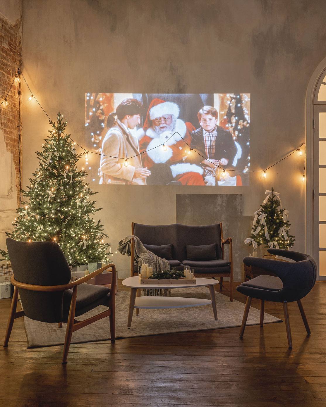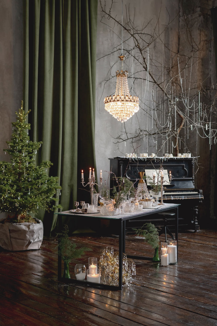 Небольшая фотостудия с домашним интерьером и большой циклорамой с видом на Новую Набережную и колесо обозрения ассоциирует ся у гостей с уютом, тишиной и спокойствием. Новогодняя локация «Хрустальный лес» добавляет декору оттенок аристократизма: ель, свечи, хрусталь и мягкий свет люстр создают идеальное пространство для душевных съемок.