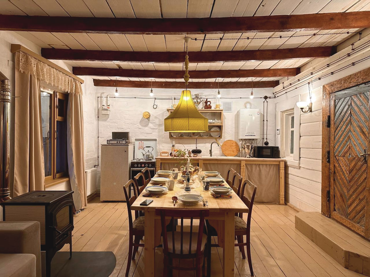 В пространстве у дома на колесах в Энгельсе три локации: трейлер, комната и амбар. Здесь часто проходят девичники, мастер-классы, практики, пикники, детские праздники. В период Нового года все локации преображаются: в доме появляются хвойные венки и живые ели, украшения в трендовом «советском» стиле; к трейлеру добавляются красивый красный бант и лавочка с тематическими подушками; амбар подсвечивается гирляндами.
